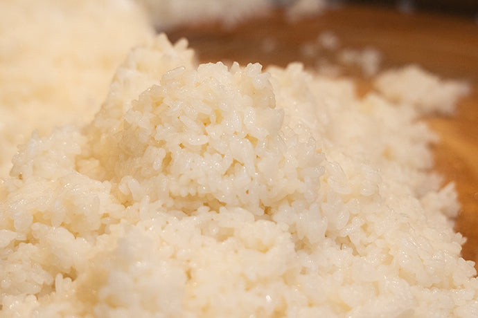 丹後地方は水が良く田が肥沃で昼夜の寒暖差が激しい、米作りに適した土地柄です。ここで篤農家が育てた丹後コシヒカリは、財団法人日本穀物検定協会が実施する「米の食味ランキング」の最高評価「特A」を通算12回獲得するという、西日本一の記録を持っています。そんな米を半年寝かせて寿司飯に最適の水分量にし、地元の名水で炊き上げて秘伝の寿司酢を合わせています。